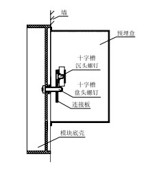 ☆ 小模塊通用底座LD60(X)包裝袋內有一塊金屬連接板,如圖4-1所示將其安裝在預埋盒固定孔上。